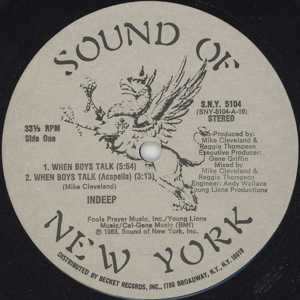 Indeep | When Boys Talk | 1983 | 05:57 | Sound Of New York | Mike Cleveland Reggie Thompson |